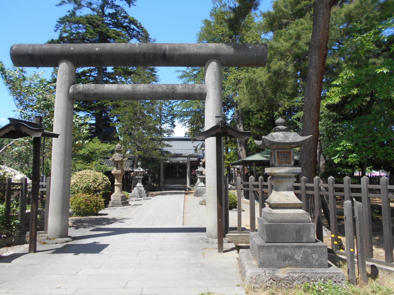 上杉神社の東側、参道の北の松岬公園に鎮座し、