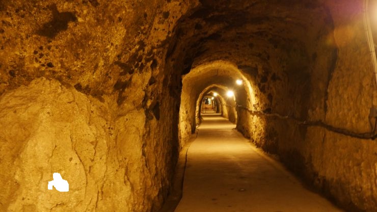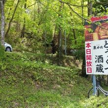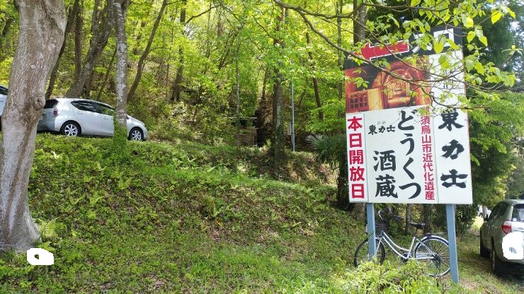 第二次世界大戦中に地下工場として建設中に終戦を迎え、用途が無くなっていた洞窟を島崎酒造が酒蔵として活用している。訪れた休日は一般開放をしていて、社員の説明をもとに内部を見学。