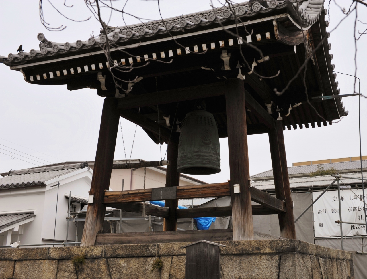 東寺は少し手を入れれば要害になったのだろうか。南北朝の戦いで比叡山の後醍醐天皇軍と東寺の足利尊氏軍が衝突。この戦いで名和長年が討ち死にするなどダメージを受けた南朝方は、以降、衰退していく。天下分け目の戦いに勝った尊氏は東寺を手厚く処遇していくが、象徴的なのが鐘の寄進だ。初代の鐘は保存されており、今ある鐘はそっくりに鋳た二代目だという。戦いの場になった東寺の歴史を語る遺構だ。