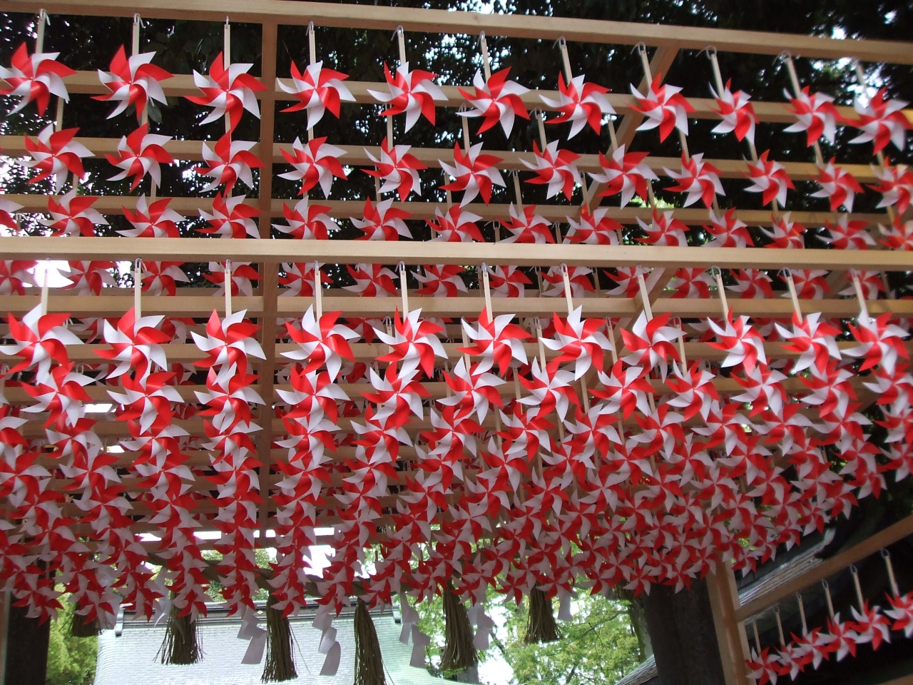 縁結びのパワースポットで、縁結び風鈴が有名です。私が行ったときはかざぐるまでしたが、かざぐるまもきれいで良かったです。大鳥居から始まり、境内には摂社・末社がたくさん。他にもご神木や舞殿など、川越総鎮守と言われるだけあって見どころいっぱいです。