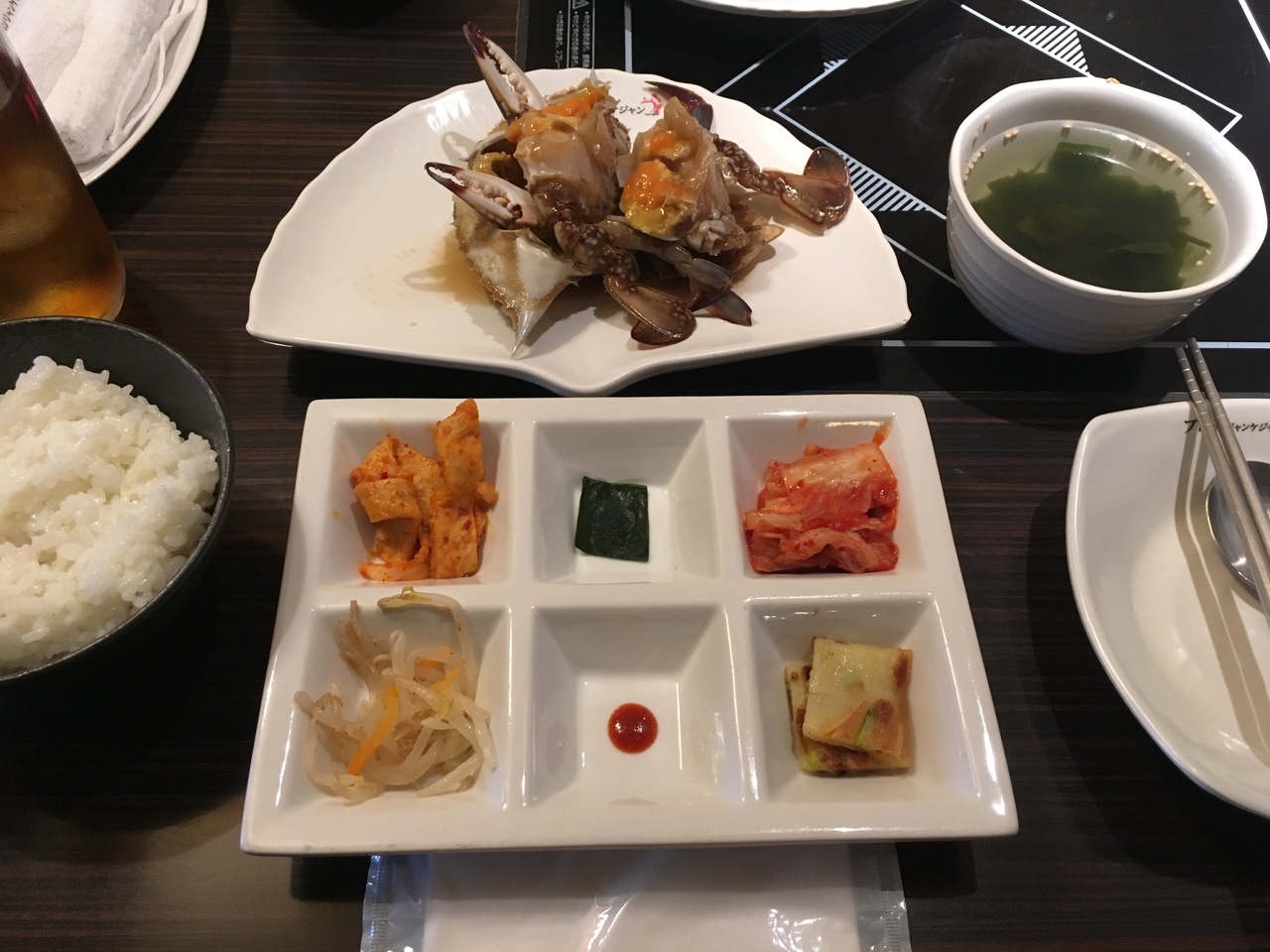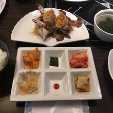 出てきたのは韓国の前菜と、大胆なカニ。