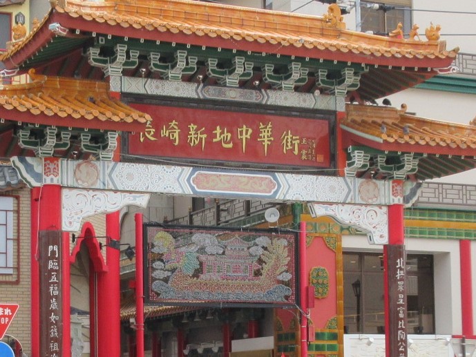 長崎の繁華街浜町の近くにある「新地中華街」の入り口に、立派な中国風の門が建っていました。赤く塗られた門は横浜の中華街にもありますが、やはり中国らしさが感じられるので、記念撮影のスポットにもなっていて、観光客が何組もポーズをとっている姿が印象的でした。