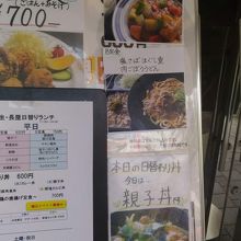 ランチタイムは、日替わり定食AB,日替わり丼と種類を絞っているが600-750円とお手軽で、サーブが早いのがうれしい。今日はBランチ(焼きサバ丼と肉うどん)にしたが、ボリュームがあって満腹。
