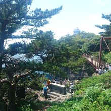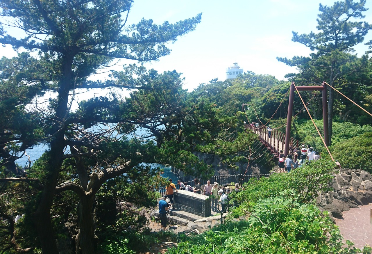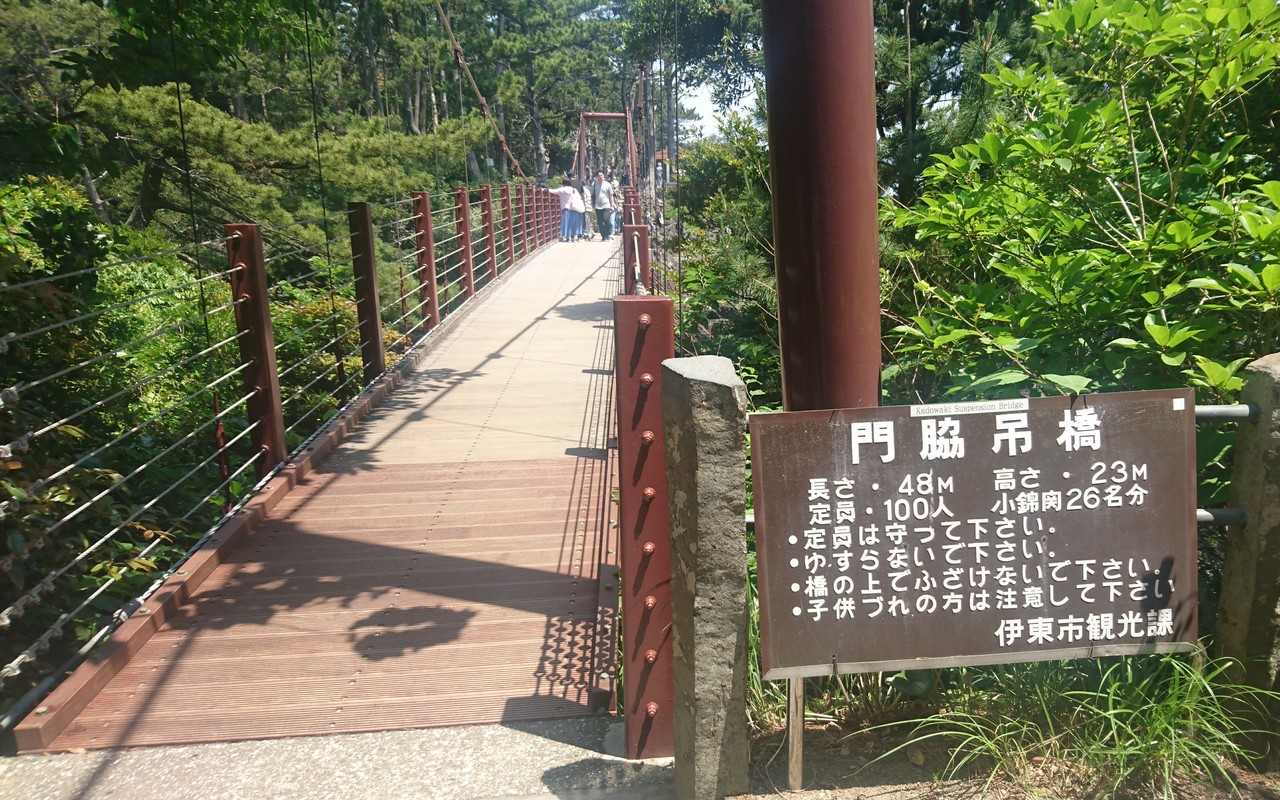 (日)の10時半頃に訪れた。駐車場は満車に近く観光客(海外の方も)思ったよりいた。岩場に降りられたり、休憩処(日陰)もあり、アイスを売ってるお店や自動販売機も設置されていた。観光名所感あり。吊り橋を渡った先に城ヶ崎ブルースの歌碑もあった。