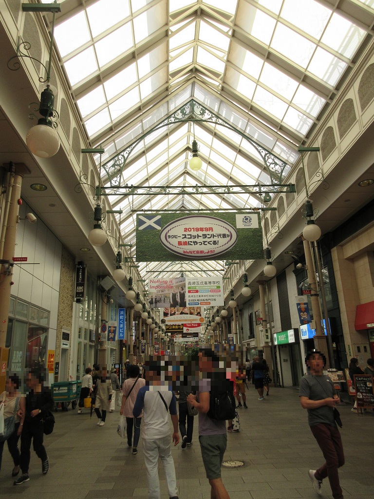 路面電車の駅からすぐの場所にあり、一日中人通りが絶えません。飲食店のお店や物販のお店が軒を連ねていて、クルーズ船で長崎を訪れた方も大勢見かけました。ABCマートとドン・キホーテが特に賑わっていました。クルーズと関係ない日本人の観光客が多いのは文明堂ですね。