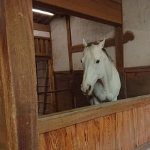 金刀比羅宮の大門をくぐり、しばらくは平坦な道を進むと、桜馬場西詰銅鳥居が見えてきます。その手前の広場、左手奥に神様が乗るための「神馬」を飼養してい御厩がありました。建物内には白馬、凛々しいお顔立ちでどことなく品がありました。