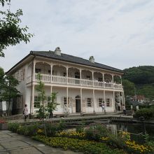 グラバー園の中でも、エスカレーターで一番高い場所に上がった場所にあるのがこちらの建物です。館内には古い船舶の模型が多数陳列されていて、子供たちが興味深そうに見学していました。2階のベランダからは長崎港が一望に見渡せて、盛んにシャッターを切っていました。
