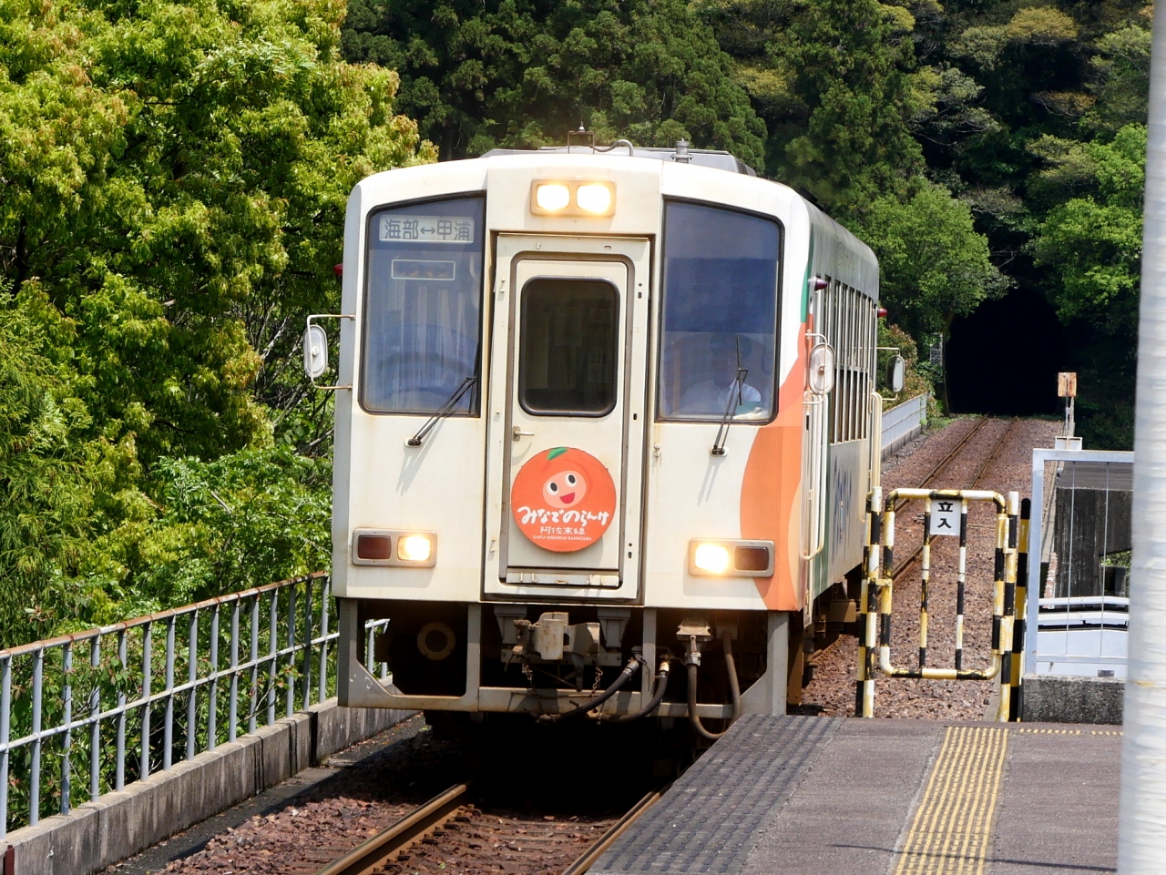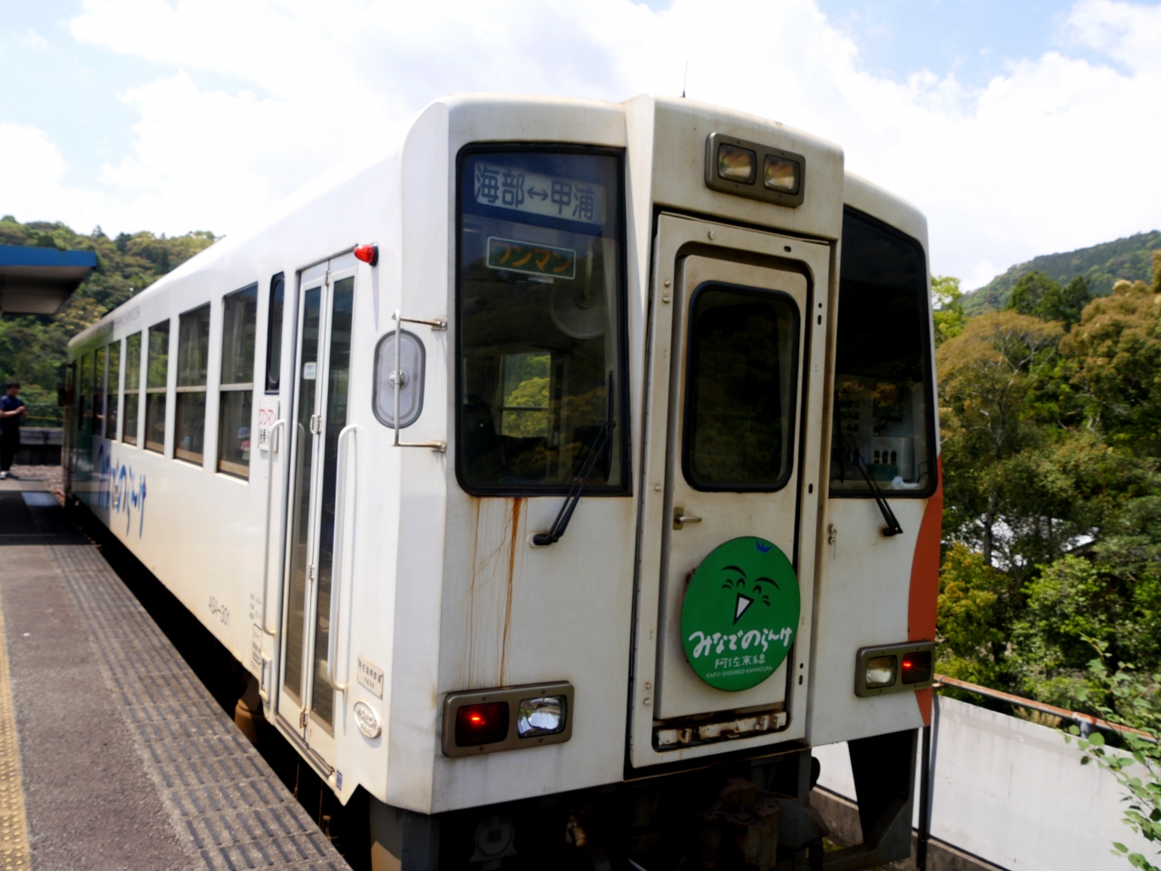 小さなプレハブで物産売店とともに切符も売っている 地元の女性2人が対応してくれる 牟岐線の切符は販売していない 阿佐海岸鉄道阿佐東線と御大層な名前がついているが2駅だけの小さな旅 270円 トイレがあるのがうれしい. 目の前にバス停があり2時間おきに安芸行が来るが,すぐ発車してしまうので乗り遅れないように注意が必要
