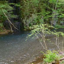 奥入瀬渓流の中流付近、「雲井の滝」の近くにあります。「千筋の滝」という標識が見えたので、その先を眺めて見ると、細長い滝??と言った感じで、近くに案内が無ければ見過ごしてしまう程の小さな「千筋の滝」でした。