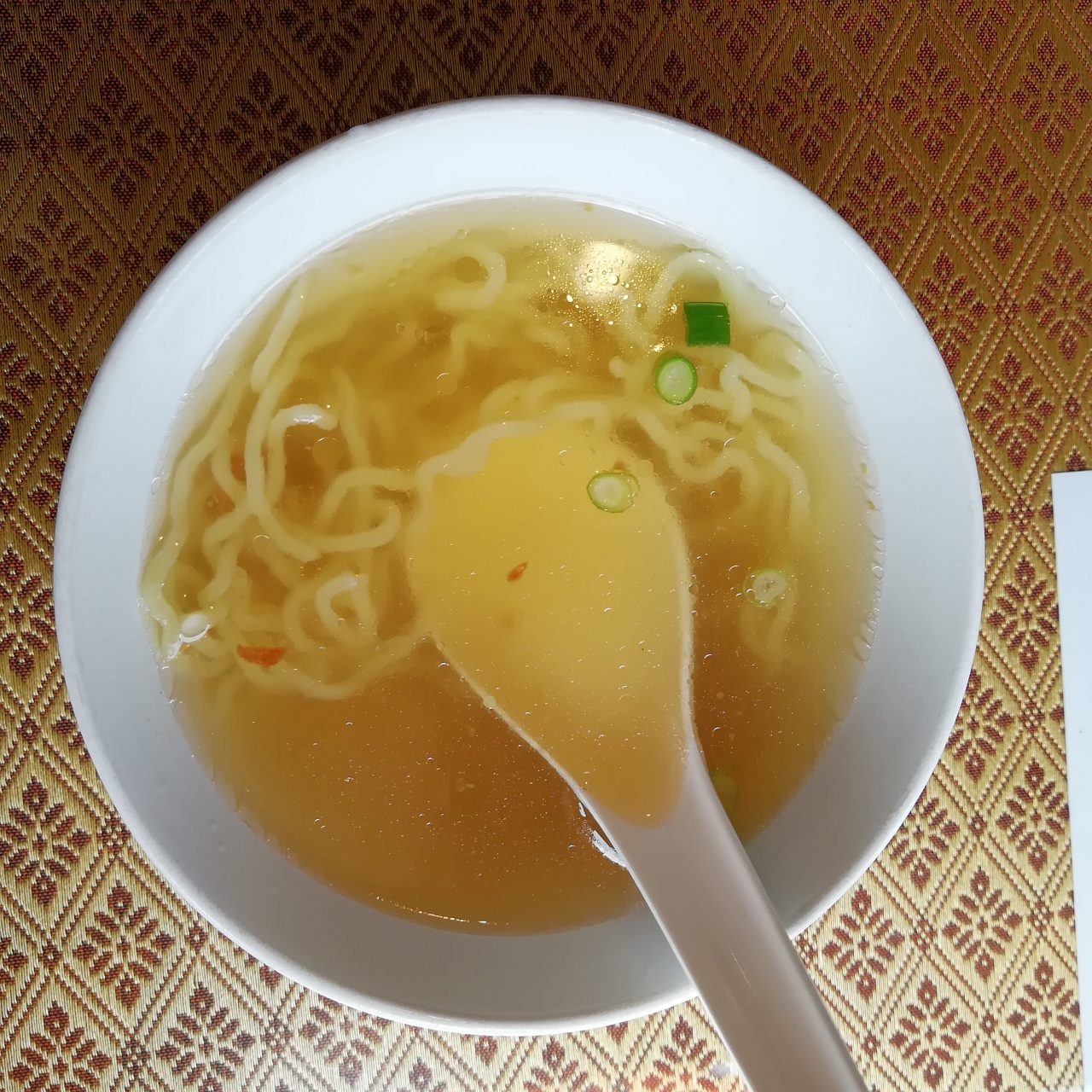 ランチセットのカオマンガイとクイッティアオ・パッキ(辛い焼きそば)を注文し二人でシェアしました。両方とも前菜3種盛り、スープ、デザート、ドリンクつきで1,380円です。