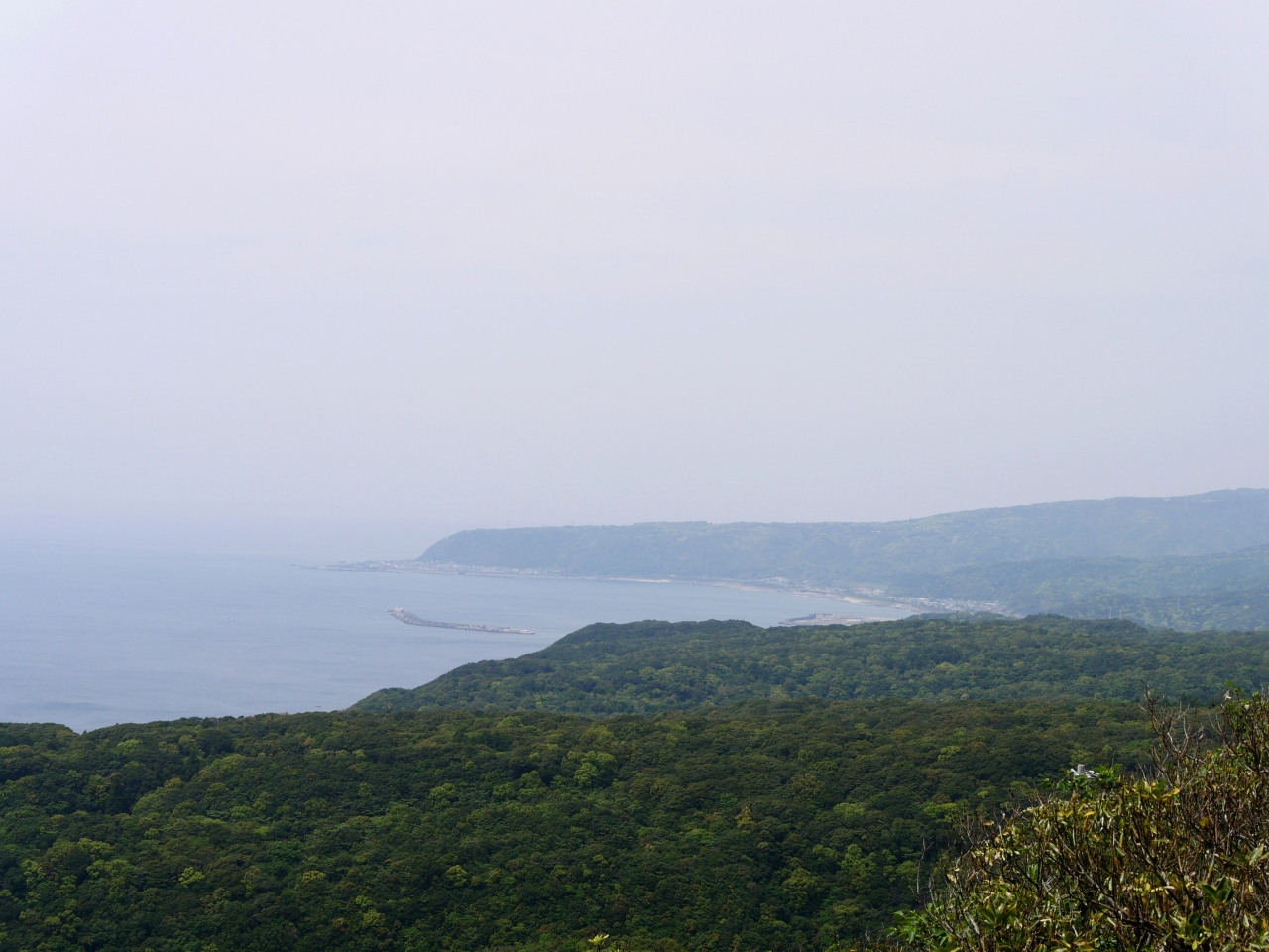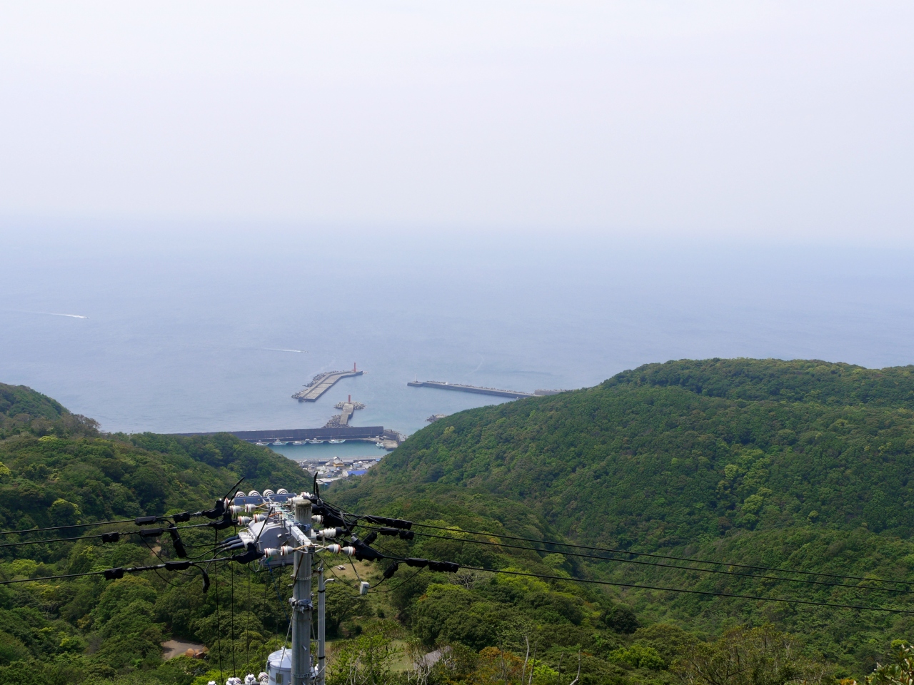 高岡園地展望台という.津呂山という.それほど高くないのですごく景色がいいとは言い難いが,海が両側に見えて,それなりにはきれいだ.このスカイライン 今では県道になったため,この展望台以外は荒れ果ててしまっている.一見の価値あり