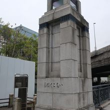 日本橋地区と八重洲地区の間を流れる日本橋川に架かる一石橋の南西の袂に堂々とした石造りの親柱があります。これが大正11年に架けかれた一石橋の親柱です。現在の一石橋の親柱は見応えがありませんが、一本だけ残された当時の親柱は重厚感があり見応え充分。