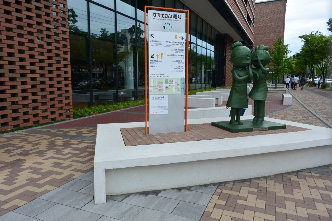 西南学院に行った時に通りました。日曜日でしたが、けっこう人通りは多く、ウィークデイなら学生さんでもっとにぎやかなんでしょうね。サザエさんといえば、東京が舞台のイメージが強いので、こちらの海岸でサザエさんはじめ海に関する名前を発想したというのはちょっと意外でした。