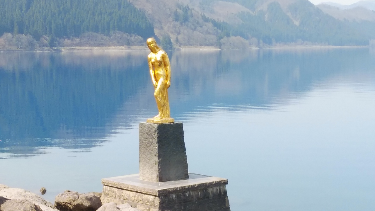 今日は盛岡市のホテル大観を早朝に出発し角館観光後に田沢湖に寄りました。田沢湖の畔に金色の像が建っていました。像の由来は『田沢湖が田沢潟と呼ばれていた頃、まれにみる美しい辰子という娘がいて、その美しさと若さを永久に保ちたいと大蔵観音に百日百夜の願いをかけると、満願の夜に「北に湧く泉の水を飲めば願いがかなうであろう」とお告げがあっので泉の水を全て飲むと龍になり田沢潟の主となって湖底深くに沈んでいった。』と言う伝説の記念碑らしいですが、伝説はまだまだ続きがあるそうで、興味があればホームページを。