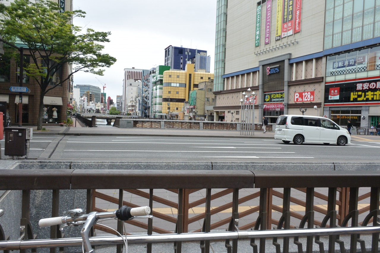 川の幅が狭いので、橋の長さが短く、「大橋」という感じはしませんでした。が、交通量や人通りも多く橋の幅から言うと、「大橋」かもしれませんね。賑やかな場所にある橋です。橋のたもとからは川沿いの遊歩道に出られるようになっていましたよ。