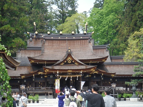 近江鉄道多賀線、多賀大社前駅から徒歩10分くらい。広くお多賀さんの名で親しまれています。御祭神は国産みの神でもある、伊邪那岐大神と伊邪那美大神。愛知県を中心に200以上の分祀社があるそうです。鳥居をくぐると豊臣秀吉が寄進した一万石によって作られたという太閤橋があります。普通は「太鼓橋」と言うところですが。しかも通常は渡ってはいけないと言われることが多いのですが、ここは気をつけてどうぞとのことでした。