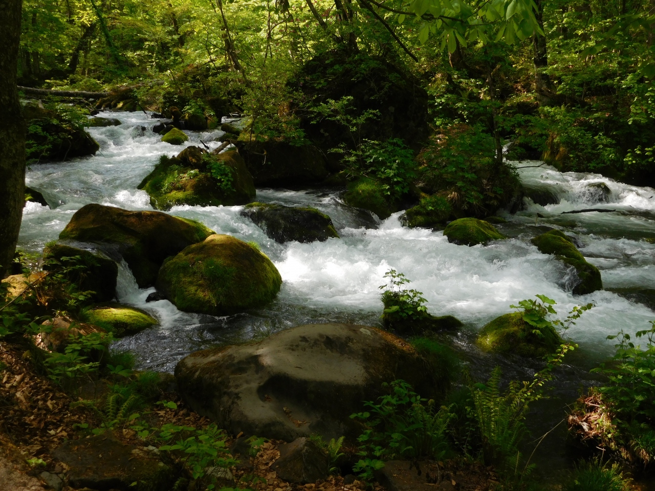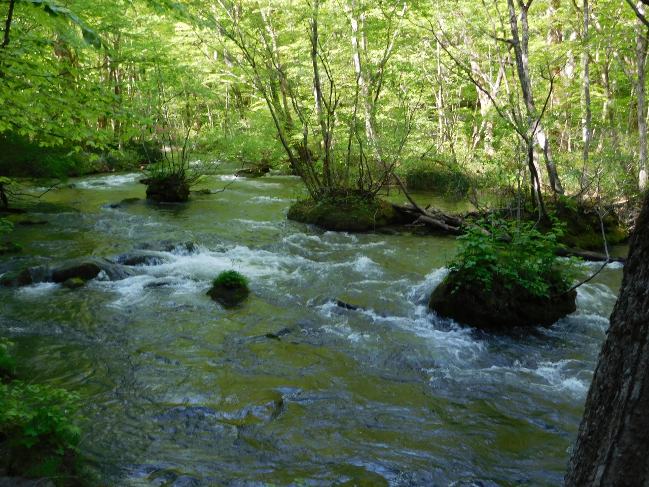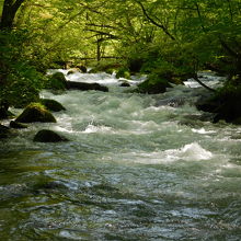 5月中旬からは新緑の季節で、山からの雪解け水で水量も多くなるので、奥入瀬渓流が一番綺麗に見えるようです。渓流沿いの散策路は、高低差がほとんど無く、歩きやすく整備されているので、写真を撮りながら、大自然の景色を楽しむ事が出来ました。お天気にも恵まれたので、太陽の光が木漏れ日となり、すごく気持ちよかったです。午前中の早目の時間だとあまり人がいないので、ゆっくりと歩く事が出来ましたが、お昼近くになってくると、どんどん観光客が増えてきているようでした。