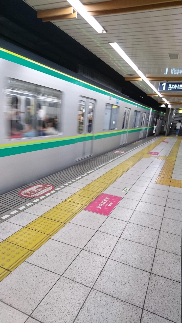 浅草から途中乗り換えて千代田線の代々木上原までいきました。東京は地下鉄が発達しているので、地下鉄を乗り継いでいけば、たいがいはどこへも行けますね。ラインのカラーはグリーン、ちょっと青みが買った明るい緑色ですね。