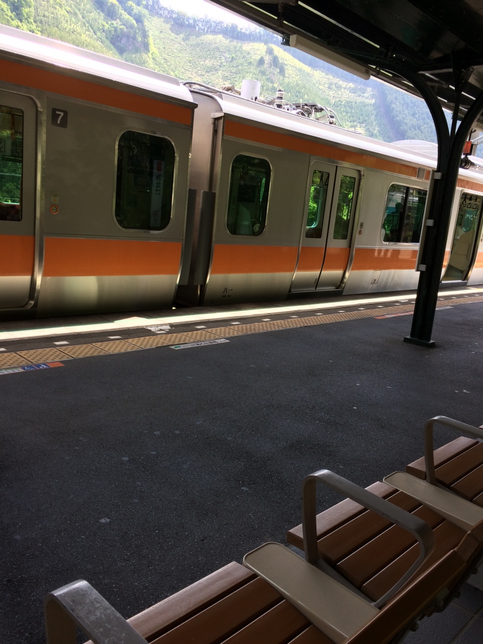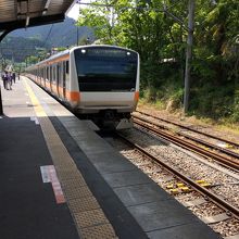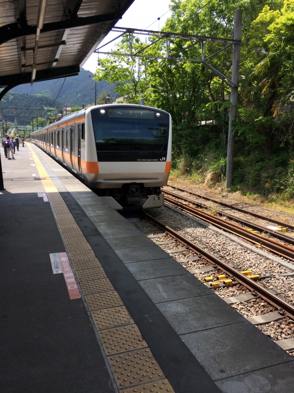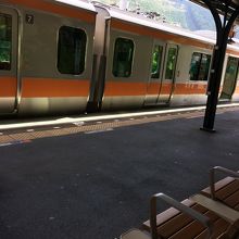 立川駅から御嶽駅まで乗車しました。ほとんどが青梅駅止まりのため、青梅より先へ行くためには、青梅駅で乗り換えが必要です。ドアは、自分でボタンを押して開閉する手動式でした。朝の時間帯、登山客と思われる人で結構、混み合っていて、座席は埋まっていました。