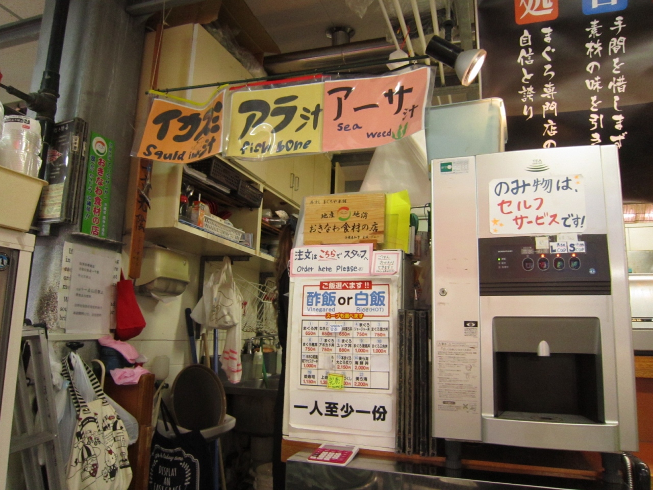 ご飯は白飯か酢飯、汁はイカ墨汁、アラ汁、アーサ汁から選択できます。