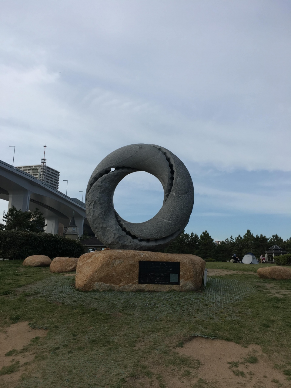 舞子公園に設置してある夢レンズ。石で出来てある巨大な建造物で、ここから見て何を思うか、何を見えるか?これを楽しむだけでもけっこうよいです。公園の中にあるだけあって、普段は地元の子どもが遊んでいることも多い場所です。
