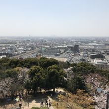 小牧山は織田信長が築いた小牧山城跡であり、土塁・石垣・曲輪跡が確認できる。頂上部には模擬天守閣が建っており、最上階からは濃尾平野が一望できた。