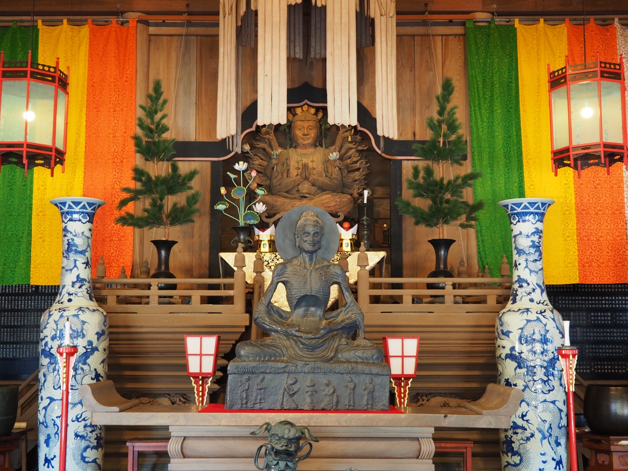 現在の法堂は1814年に再建されたもの。昔は山内にいる僧侶が全員この法堂に集まり住持の説法を聞いたそうです。千手観音坐像を安置していますが、その前に鎮座する釈迦苦行像が強烈な印象で(全く知らなかったので)少々違和感を覚えました。調べてみるとこれはレプリカだそうで、千手観音坐像の前ではなく別の場所があったのではと思います。