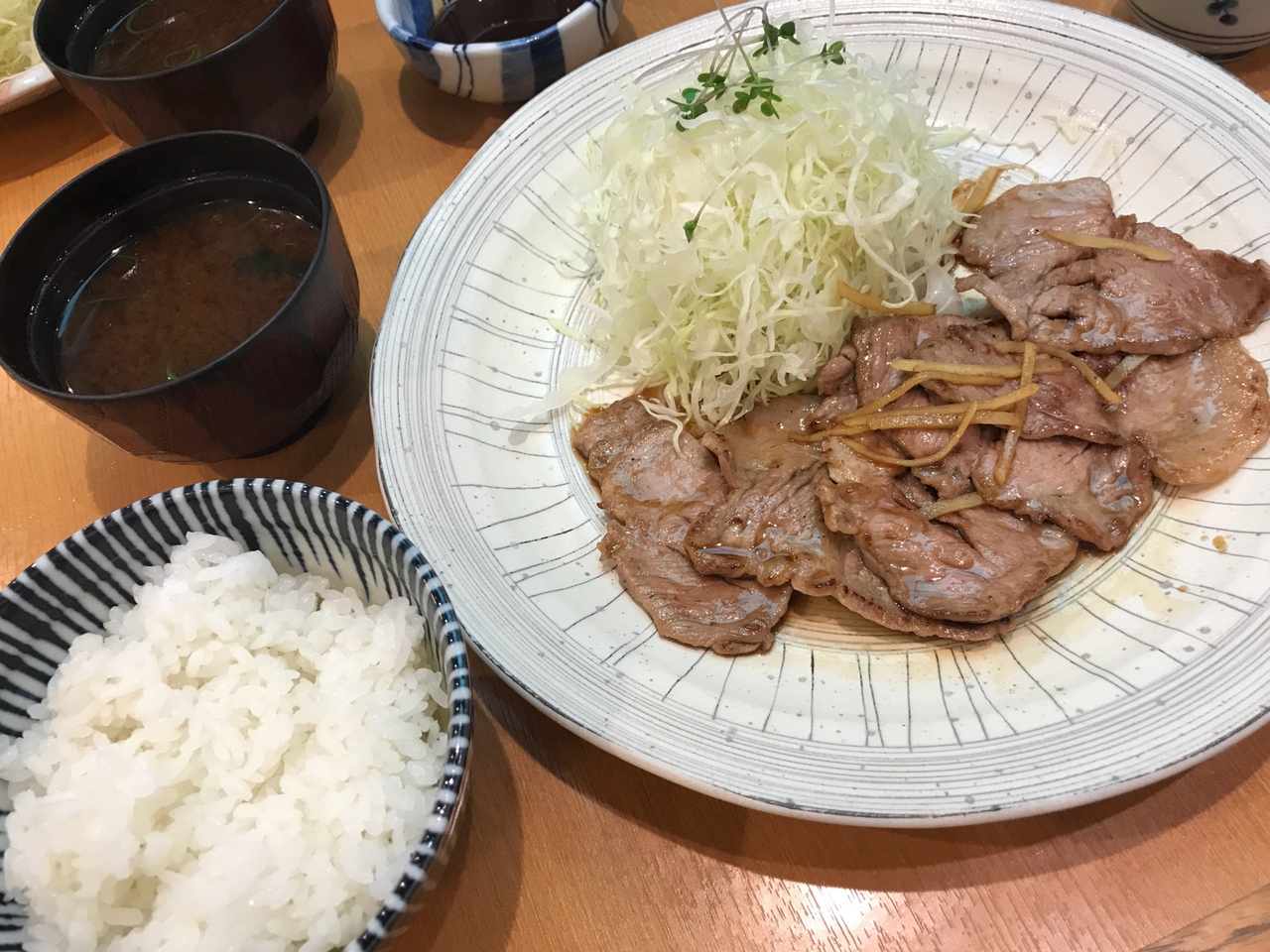 ボリュームの割にコスパが少し悪いと感じられるお店です。ご飯とお味噌はお代わり自由でした。揚げ物のメニューがたくさんありますが、豚の生姜焼きも珍しい豚を使用しているとのことで選びました。とても柔らかく味付けも抜群でした。