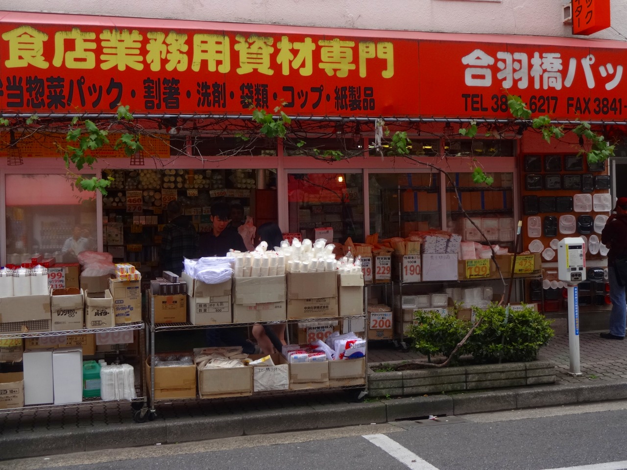 ここは調理器具や什器だけではなくパックやコップ、割りばしなどの専門のお店などもあります。