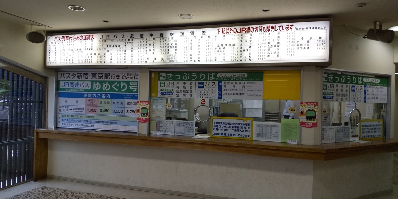 草津温泉の役場前にあり、新宿や軽井沢、JR長野原草津口駅へアクセスするバスが運行しています。
