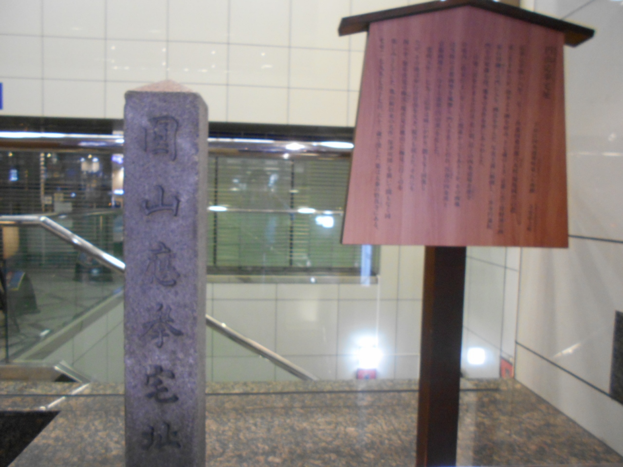 四条通の、烏丸と河原町の間に碑があります。飲食店の看板の横にひっそり、気が付く人は