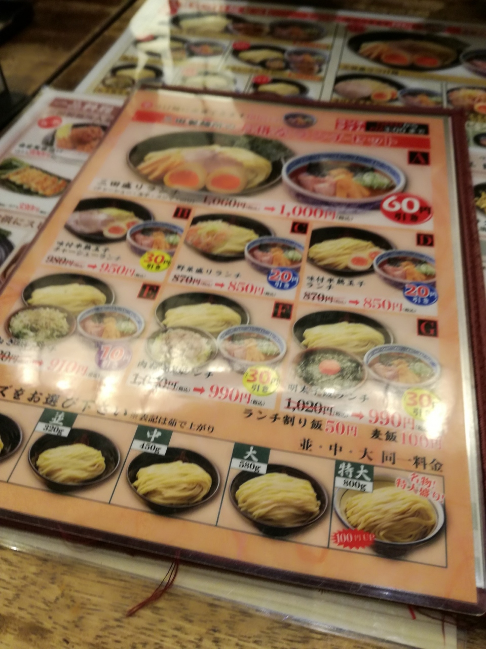 新宿西口にある三田製麺所です。人気のつけ麺は、中太麺を魚介豚骨のつけ汁で食べますが、つけ汁にめんが良く絡んで美味しかったです。麺の量は、並(320g)、中(450g)、大(580g)までが同一料金なのでたっぷりとつけ麺を食べたい人たちにはおすすめのお店です。