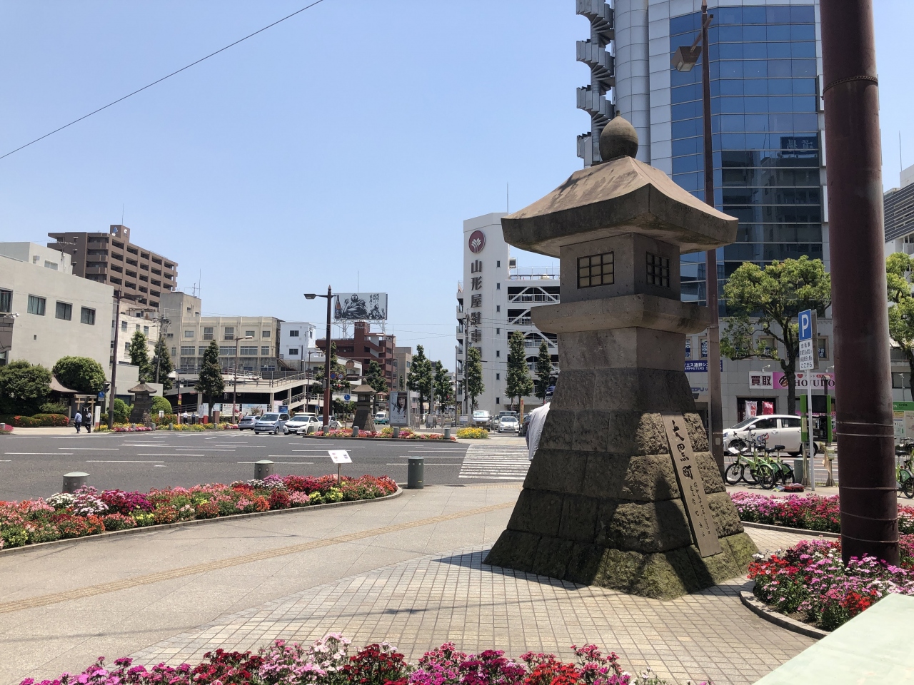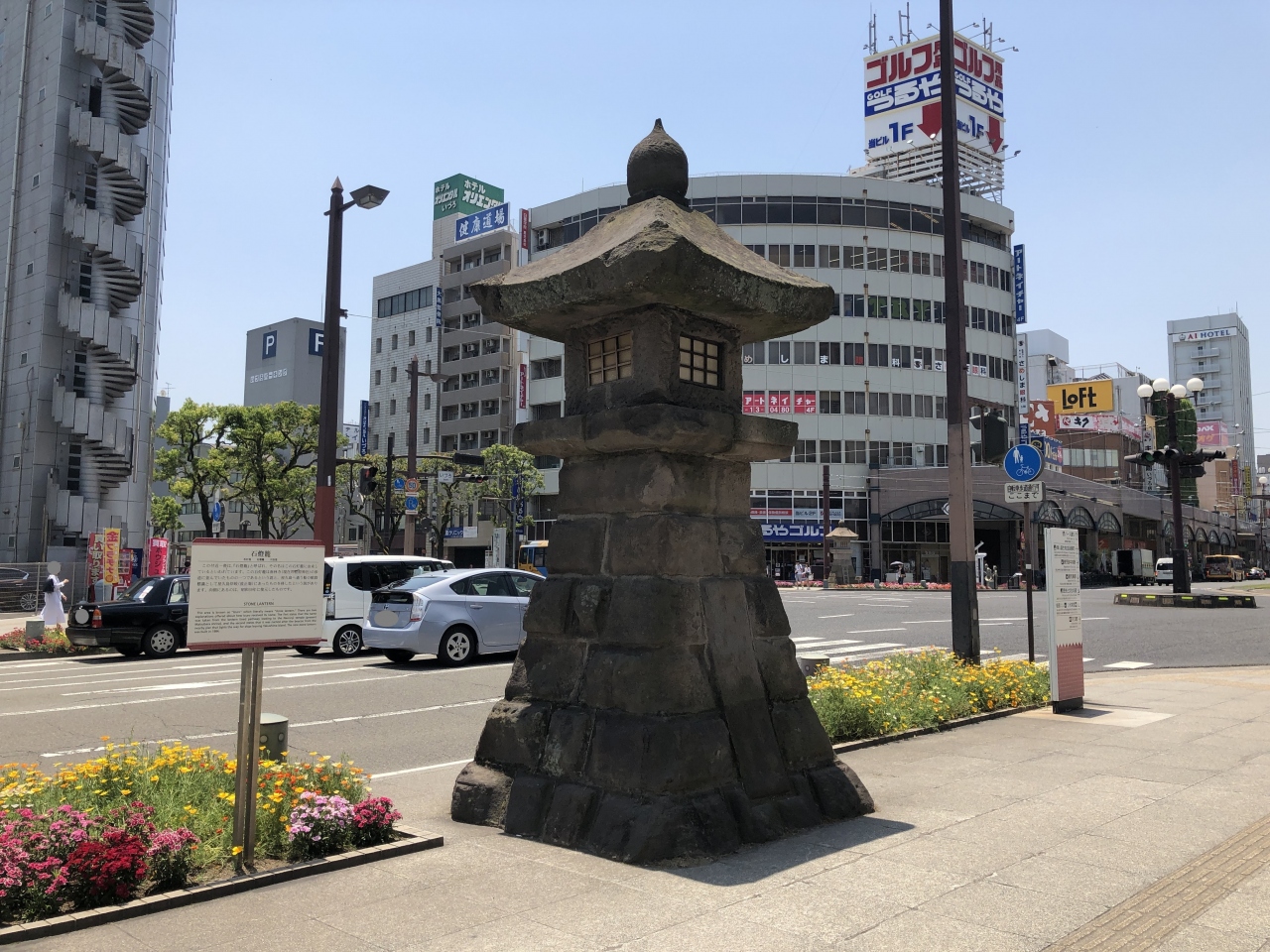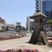 もともとは別の場所にあったものですが、現在はいづろの大きな交差点に移築されたり、復元されたりしたものがあります。地名の「いづろ」も「石燈籠」に由来しているそうです。石燈籠は複数ありますが、時標(ときしるべ)4 「龍馬、お龍と薩摩でひと休み」のモニュメントが併設されているものもあります。