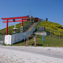 神社は火事があって再建中で中にははいれず、社務所は仮設のプレハブで