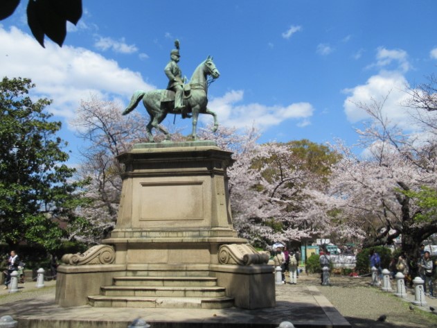 上野恩賜公園の西側エリアには上野動物園があって、その近くには「小松宮彰仁親王像」があります。周囲には桜も咲いていて台座の上の騎馬像は躍動感があって颯爽と跨る小松宮彰仁親王も凛々しい姿が美しく芸術作品としては素晴らしいものだと感じました。