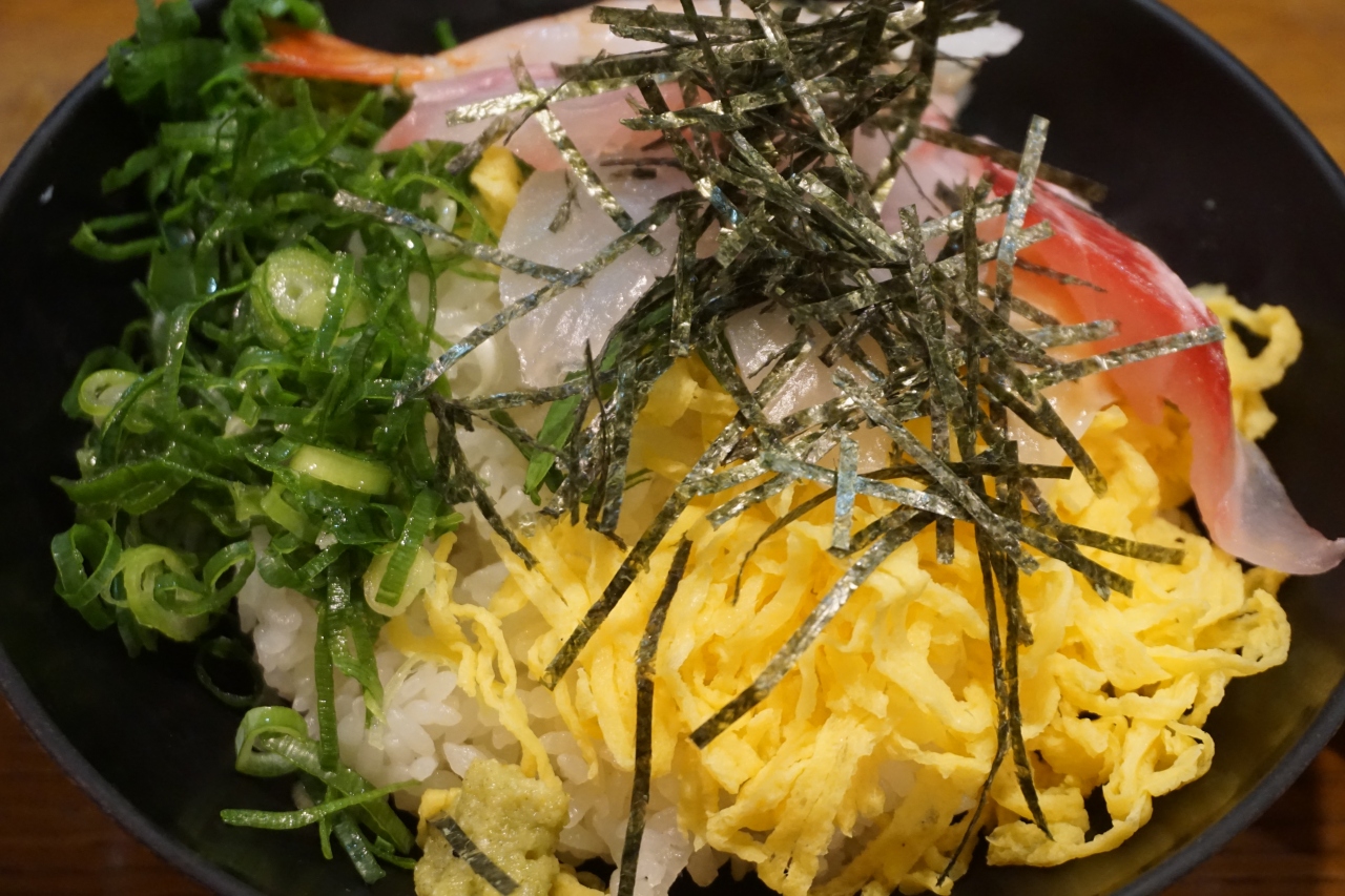 和食居酒屋 旬門は、米子駅から駅前通りを進んですぐ。店内は広い土間から奥が深くて、どうかすると古民家風の雰囲気。従業員の活気もあるし、いいじゃないですか。それにいただいた海鮮丼は、とっても魚が新鮮。寂れていく一方の米子ですが、こんないい店があったことにちょっと驚きました。