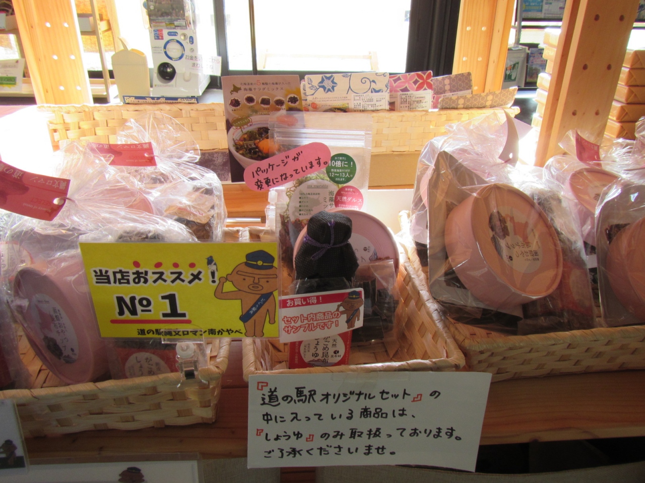 その他にお土産としては、地元茅部の昆布を使ったしょうゆやクッキーなどの加工品を少々置いている程度で、道の駅というよりは、併設する縄文文化交流センターのミュージアムショップ的な小規模な店舗です。