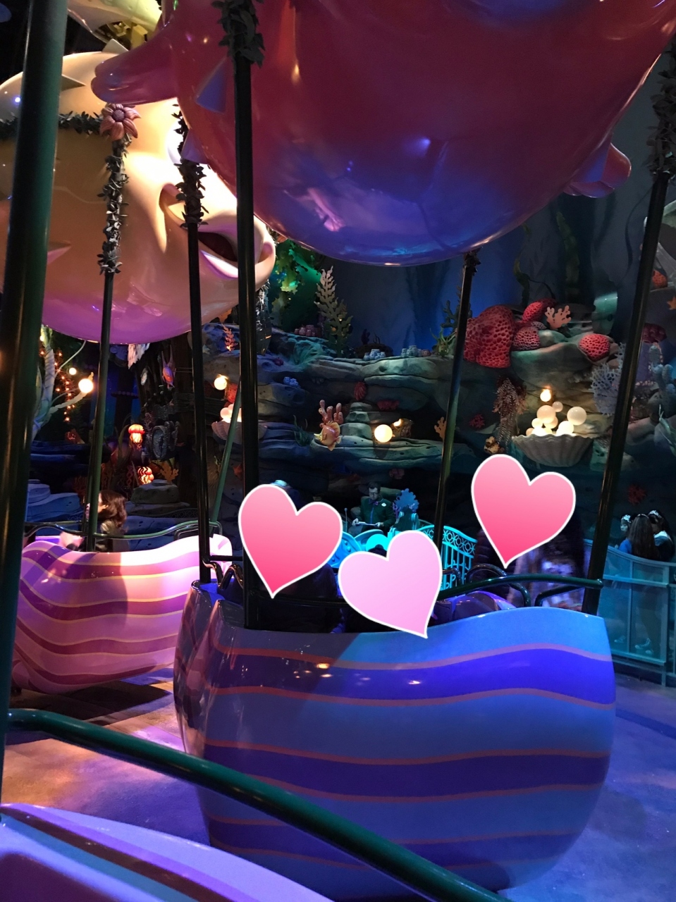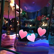 マーメイドラグーンの中では、高さと動きがあってほんのちょっとスリルが味わえるアトラクションです。その分人気も高く、待ち時間もマーメイドラグーンの中でも長いほうだったと思います。小さい子も一人で座れれば一緒に乗れます。家族で楽しめます。