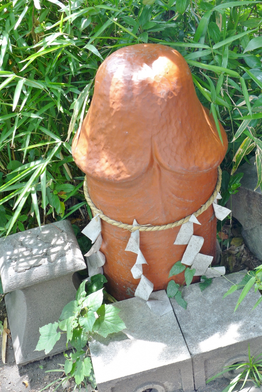 金山神社は子宝や安産にご利益があるそうで、外側を黒い鉄板で覆われた本堂やその前に建つ絵馬殿には幾つもの男性のシンボルが奉納されていました。