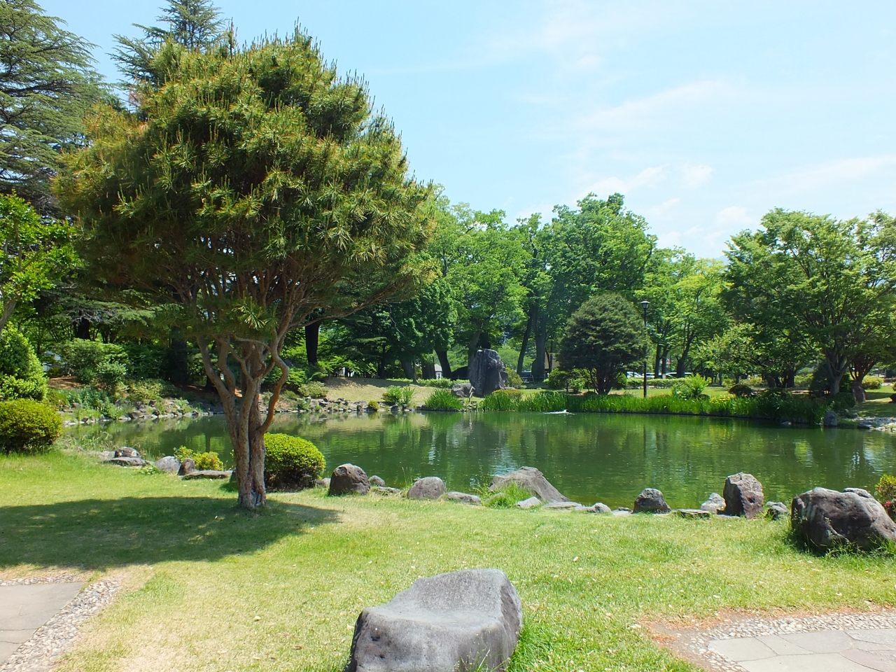 図書館や資料館、古い建物などが入り口付近に有り中央部に池がり人工の小川が流れています。奥には子供達が遊べる遊具が有ります。扇型の広場も有り野球も出来るのかな。