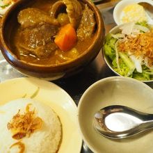 要するに、ボーコーという、牛肉と人参のスパイシー煮込みをメインとしたランチ。