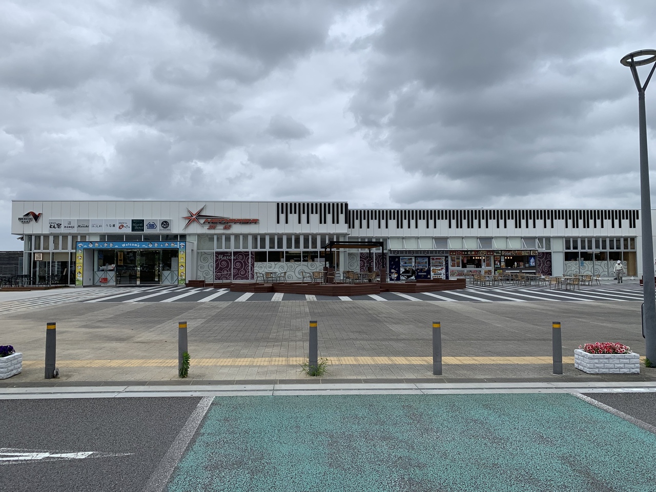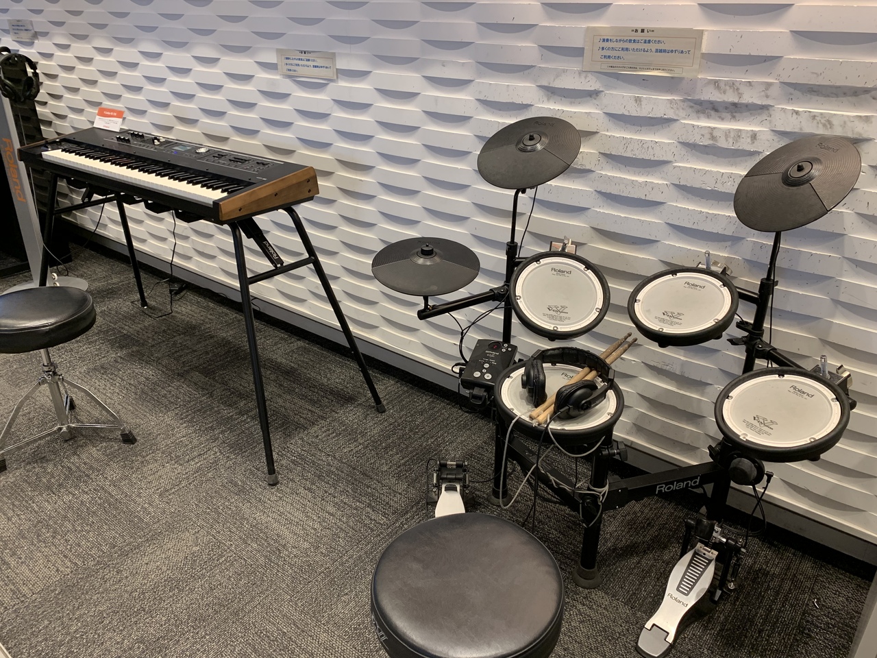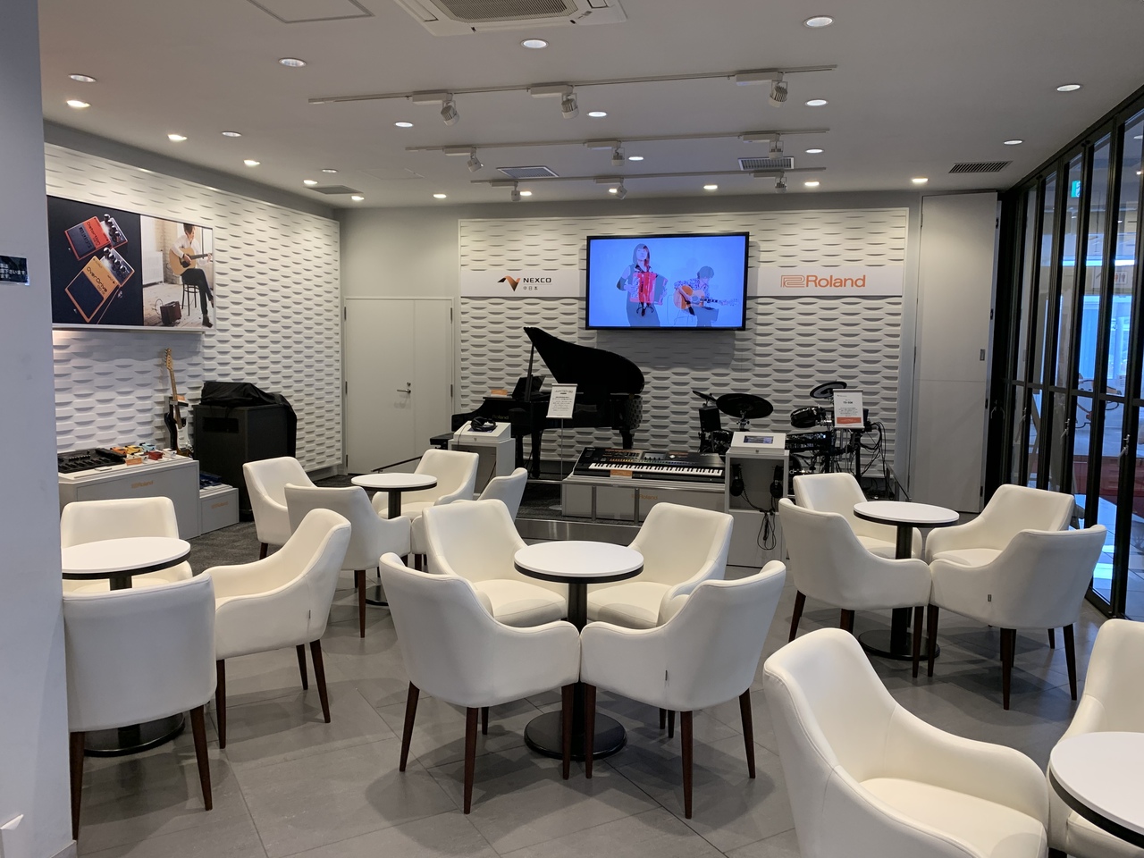 建物の壁には楽器の町浜松をイメージさせるピアノの鍵盤が描かれている。下り線はYAMAHA、カワイと並ぶ楽器メーカーRolandの電子ピアノやドラムなどの楽器がいじれ気分転換に楽しい。上り線は同じく浜松に本社を置くYAMAHAとなる。