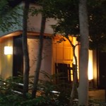 外観は古民家を思わせる平屋でライトアップされた感じが渋い。