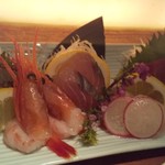 料理はおばんざいが売りなので、おばんざいの盛り合わせと刺身盛り合わせを注文。