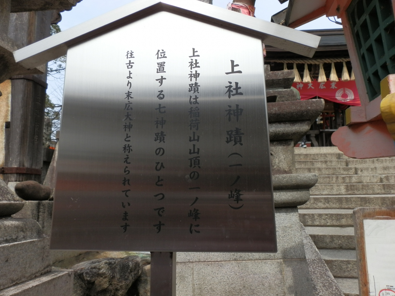 稲荷山の最高峰 標高233mの一ノ峰(上社神蹟)へ行く参道は稲荷山を巻くように石段がある。和服姿の女性の足元は足袋に草履、その足姿でどんどん登って来る。標高233mとは言え、山である。下りも考え、足元は運動靴がベストではないでしょうか。