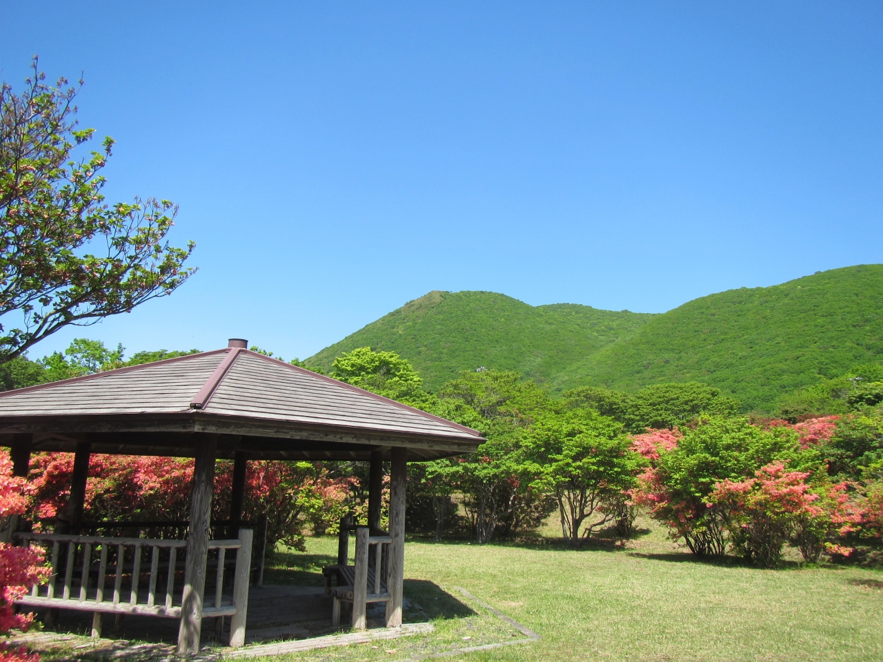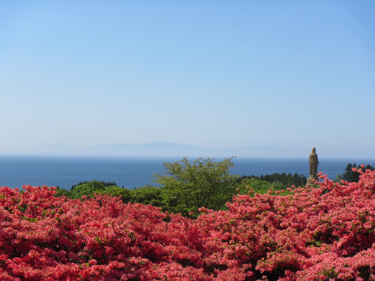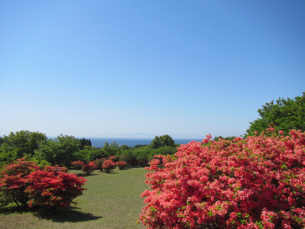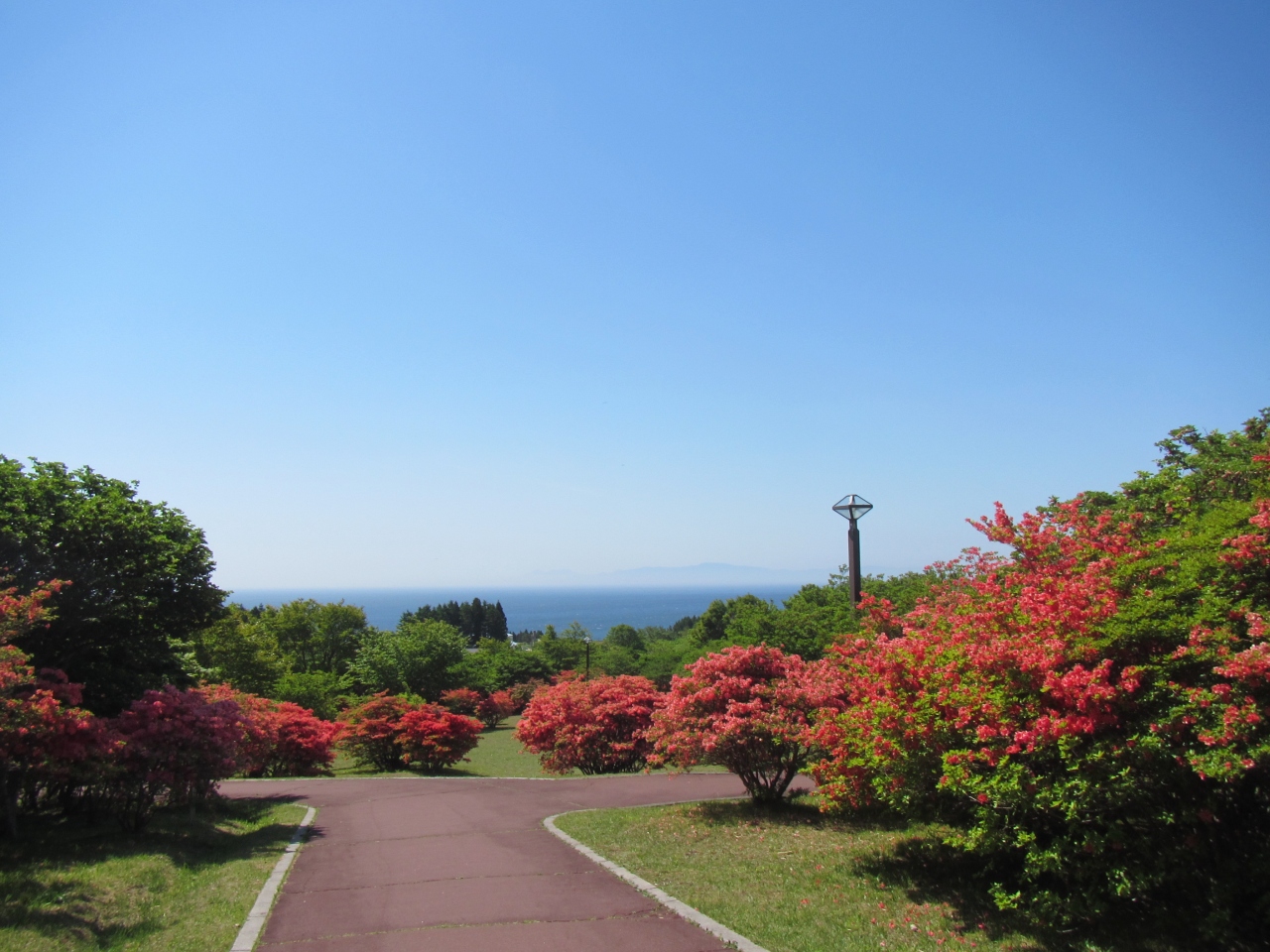 視界が良ければ、丘上のつつじ咲く園地から、青い津軽海峡、そして対岸の下北半島を望むきれいな景色を堪能できます。