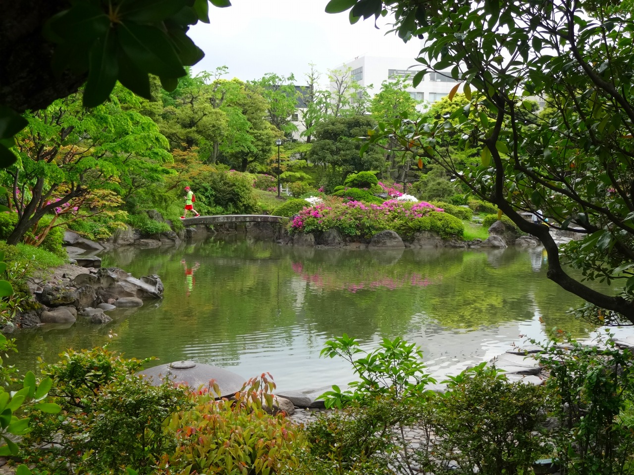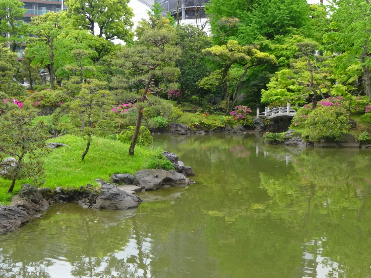 旧安田庭園は潮入り回遊式庭園として整備された大名庭園ですが、嬉しいことは入園無料、タダでは入らない手はありません(笑)