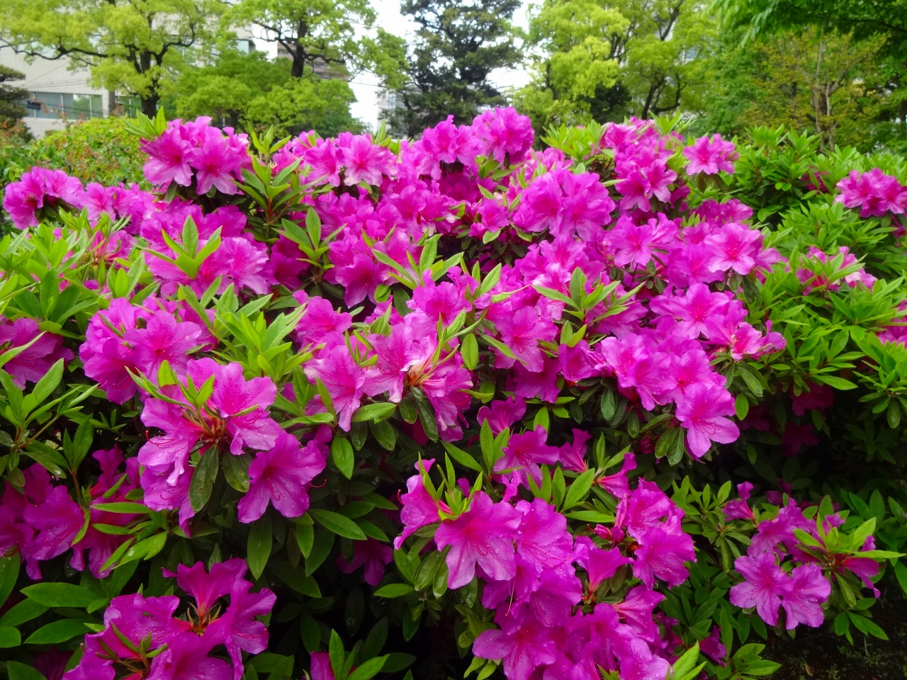 折からオオムラサキなどのツツジ、サツキが満開近くになっています。