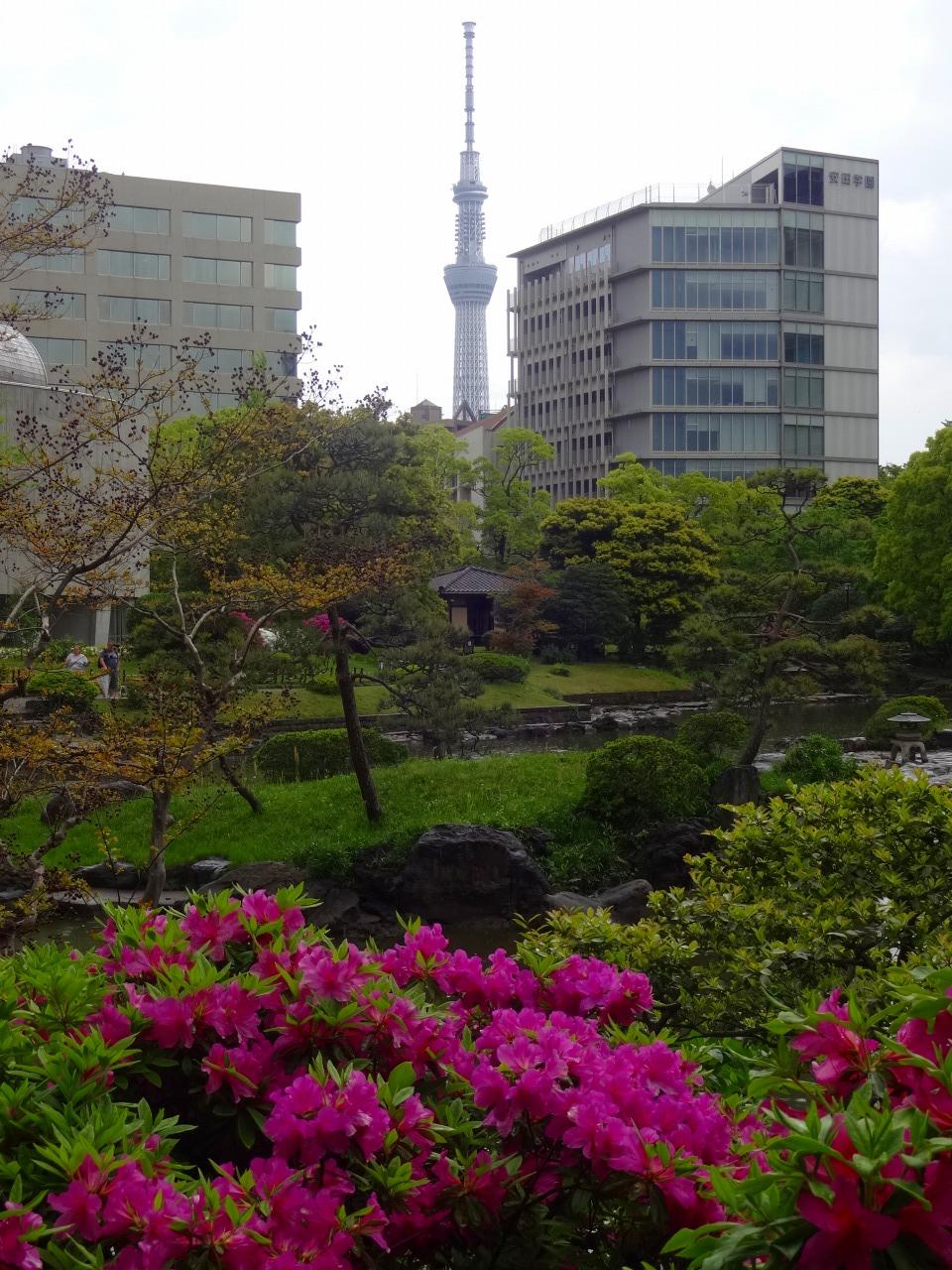 もちろん、この安田庭園からもスカイツリーが見えるのですが、この庭園は人も少なく両国のオアシスのようです。