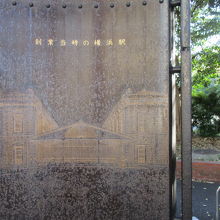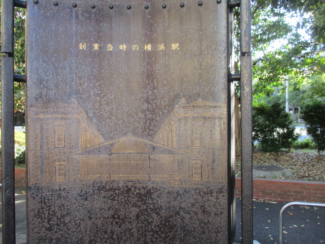 JR桜木町駅野毛出口から線路下を関内駅方面へ向かって進むと高架と道路に挟まれた狭い場所にある鉄道発祥記念碑に歩いて3分ぐらいで着きます。鉄道発祥記念碑は1872年に新橋~横浜間に鉄道が開通した時の初代横浜駅のあった場所にあります。記念碑は高さ5メートルぐらいあり鉄道創業当時の横浜駅風景や鉄道列車出発時刻賃金表、乗車心得建碑の由来が刻まれています。大きな木の陰になり文字も消えかかっていて鉄道発祥の地として寂しいですが頭部の装飾や双頭レールがはめ込まれいて見ごたえありますのでお立ち寄りをお勧めします。。